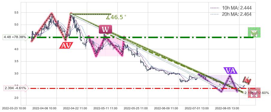 ♘ 阻力价格位4.48,可信任强度97.14%,距离最后交易2022-08-12 14:00形成的收盘价格2.510相差 +78.38%