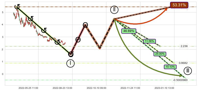 ➣ 波浪理论:猜想下跌浪5即将形成,随后猜想后续形成abc反弹上涨(均值回复)