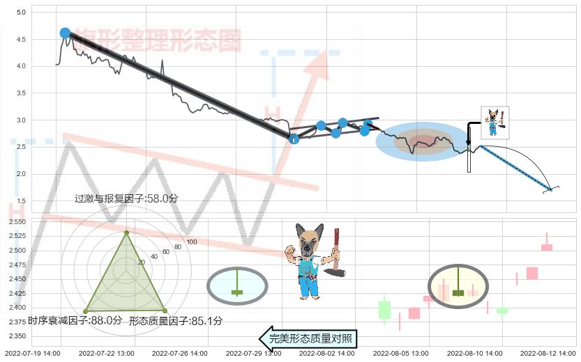 从2022-04-15 09:00至2022-08-12 14:00,共包含287个小时,阶段股价下跌-71.31%,阶段股价变动位移路程比: 1 : 5