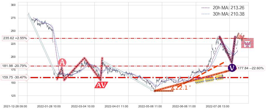 ♘ 支撑价格位235.62,可信任强度51.70%,距离最后交易2022-08-12 14:00形成的收盘价格229.75相差 +2.55%