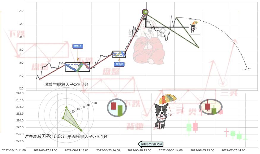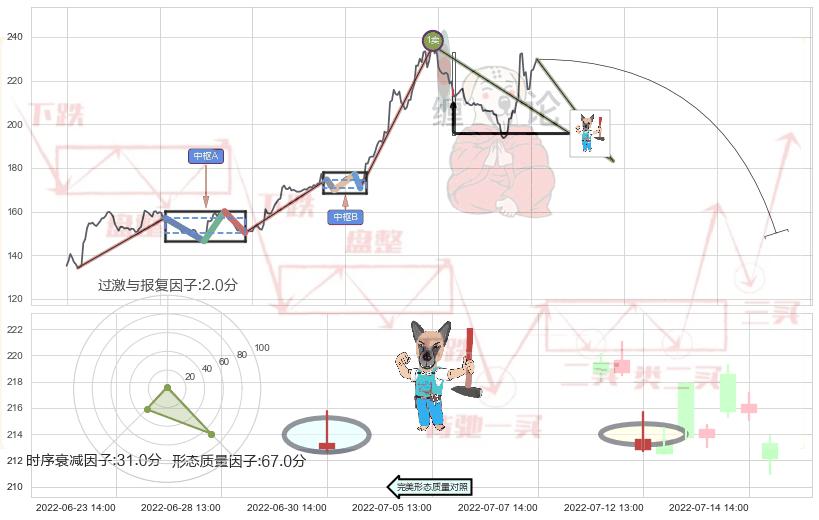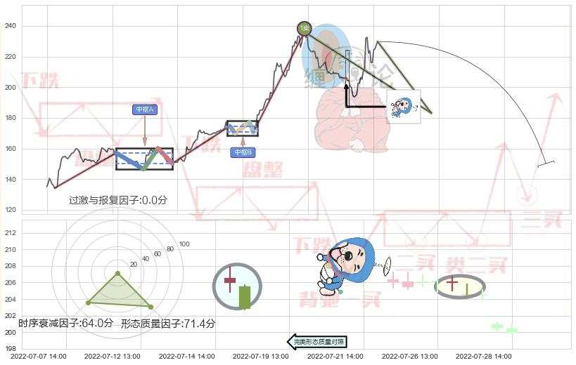 ➢ 🕰 价格走势在2022-07-12 13:00:00至2022-07-12 13:00:00期间形成看跌(高位倒锤头)流星线,残存影响值:-2.28