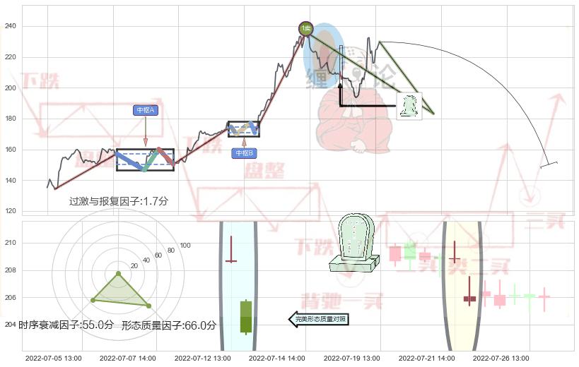 ➢ 🕰 价格走势在2022-07-26 14:00:00至2022-07-27 13:00:00期间形成下跌螺旋桨,残存影响值:-2.92