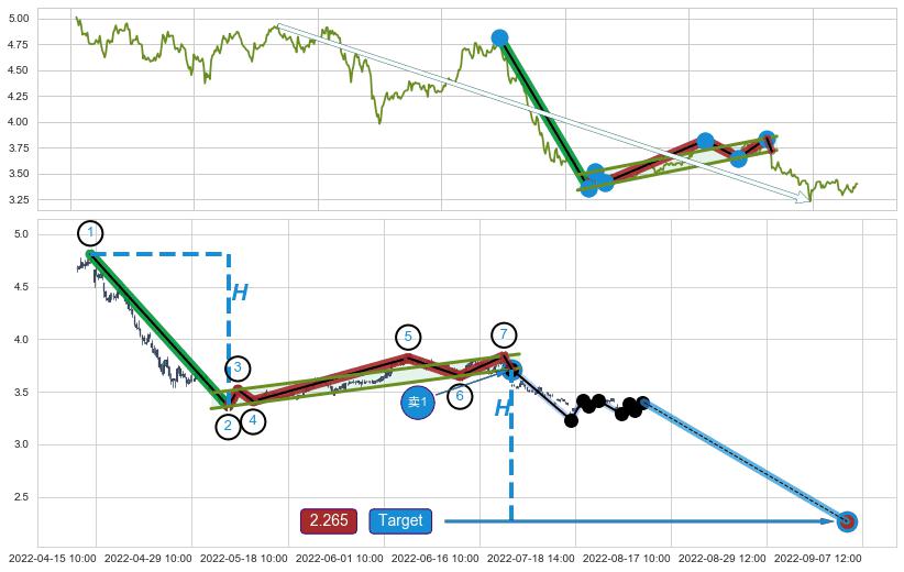 ➣ 最小中继整理跌幅→𝐇: 1.4500 (𝐇旗杆的长度:旗杆起点→顶点)
