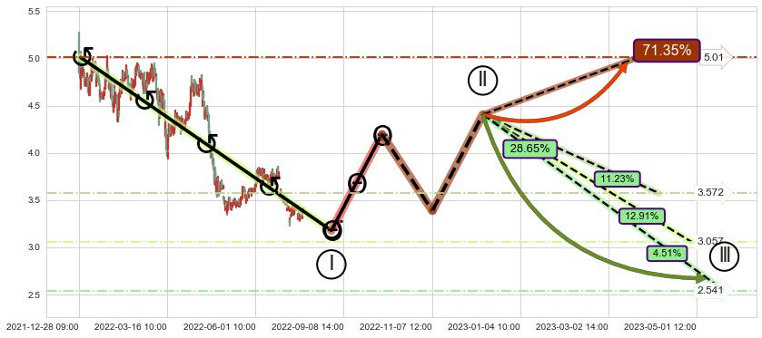 ➢ 循环浪继续向下【最高】位置(04-05:13, 3.572),匹配聚类样本比例39.20%, 可能性概率11.23%