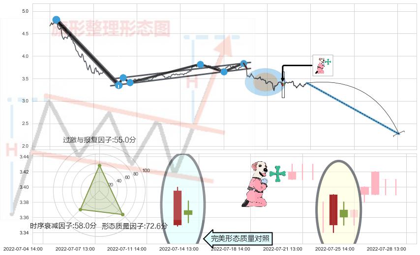 ➢ 下跌螺旋桨 🔜 升旗形支撑破位转换阻力下跌 综合量化分数:49.19 【中性】