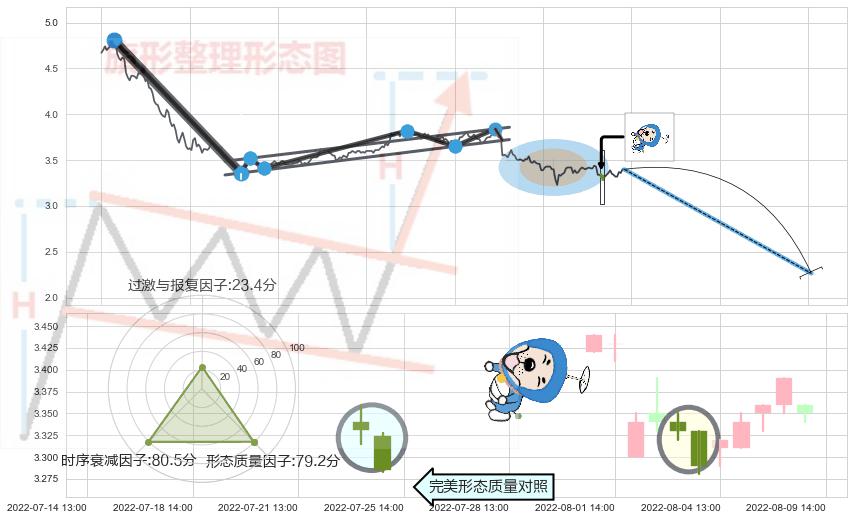 ➢ 🕰 价格走势在2022-08-03 13:00:00至2022-08-03 14:00:00期间形成下跌螺旋桨,残存影响值:-4.53