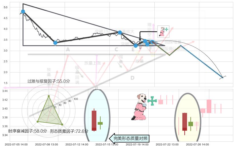 ➢ 下降对称三角整理临近支撑猜想转换阻力下跌 🔜 下降三角整理临近支撑猜想转换阻力下跌 综合量化分数:40.31 【偏空】