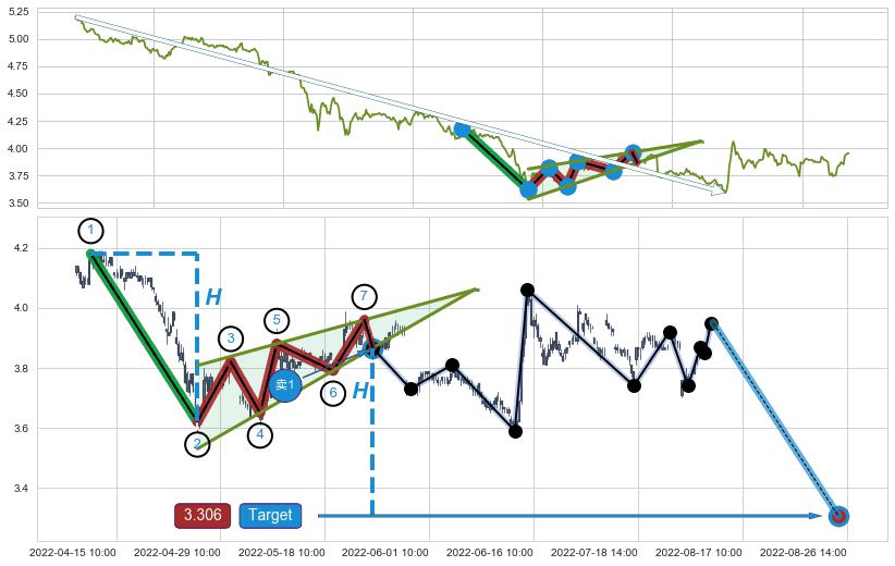 ➣ AI预测: 假定反转启动后, 第❶目标位置(09-14:13, 3.979)