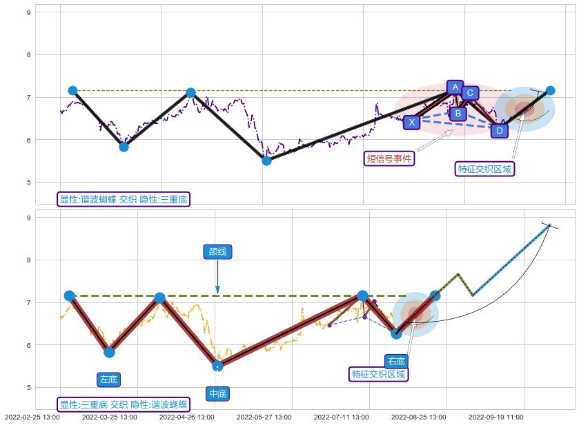 ➢ 谐波蝴蝶属【短级别信号事件】三重底属【长级别信号事件】长短周期组合信号事件, 短长事件长度比20.18%