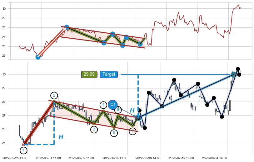 ➣ 最小中继整理涨幅→𝐇: 3.160 (𝐇旗杆的长度:旗杆起点→顶点)