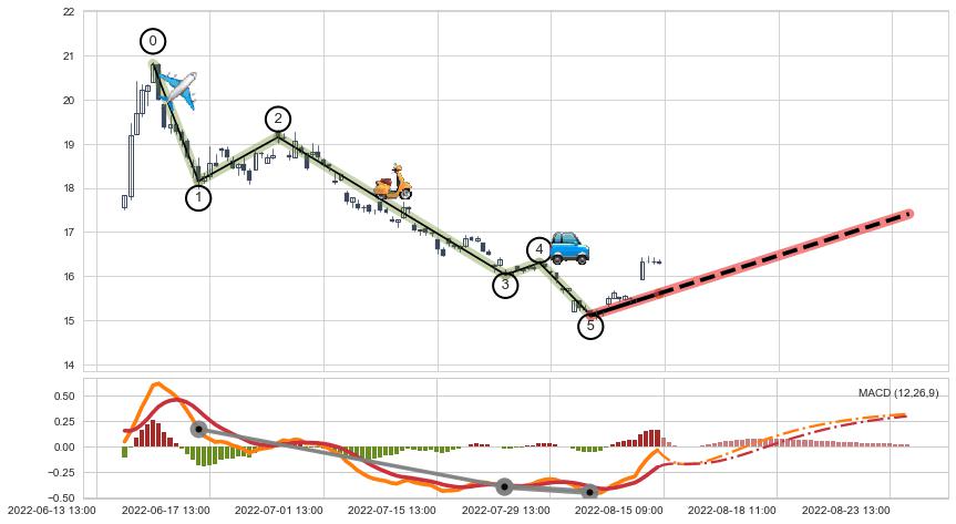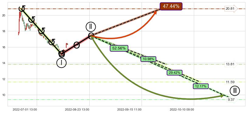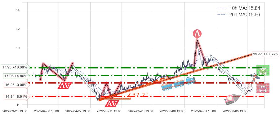 ➢ AI预测: 假定反转继续,第❸价格目标位置(08-22:13, 15.91)