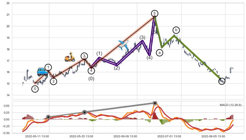 ➣ 波浪理论:猜想达到c点后小回调终止反转上涨 → 上涨 → 【拐点】临近 → 阶段均值回复结束后继续大周期趋势跟踪