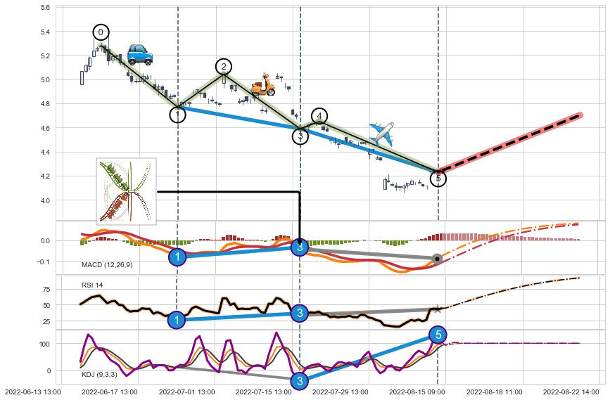 2022-06-14: 时域附近第一阻力位5.01持续的对下跌趋势进行阻拦,有效地放缓了下跌的速度。