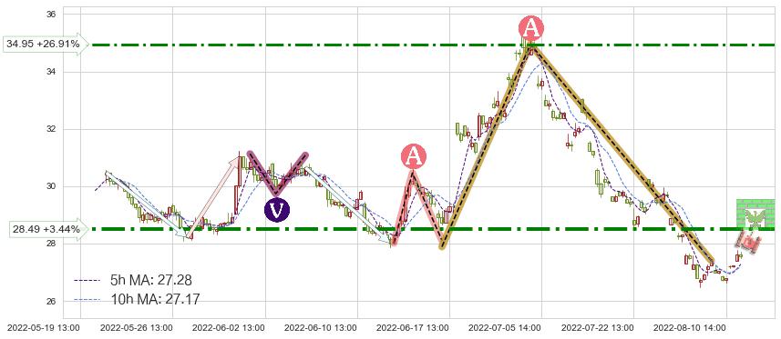 ♘ 阻力价格位28.49,可信任强度82.72%,距离最后交易2022-08-12 14:00形成的收盘价格27.54相差 +3.44%