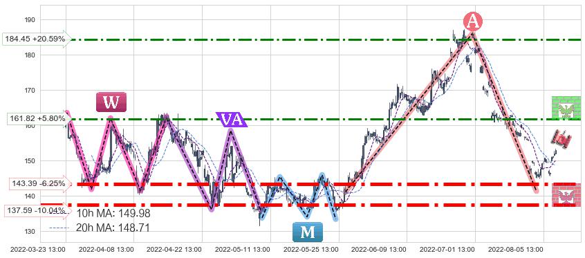 ♘ 阻力价格位161.82,可信任强度69.42%,距离最后交易2022-08-12 14:00形成的收盘价格152.95相差 +5.80%