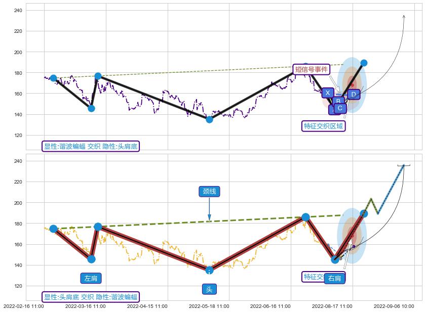 ➢ 谐波蝙蝠属【短级别信号事件】头肩底属【长级别信号事件】长短周期组合信号事件, 短长事件长度比5.50%