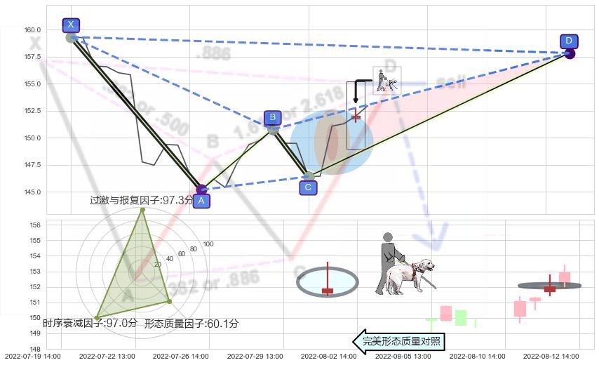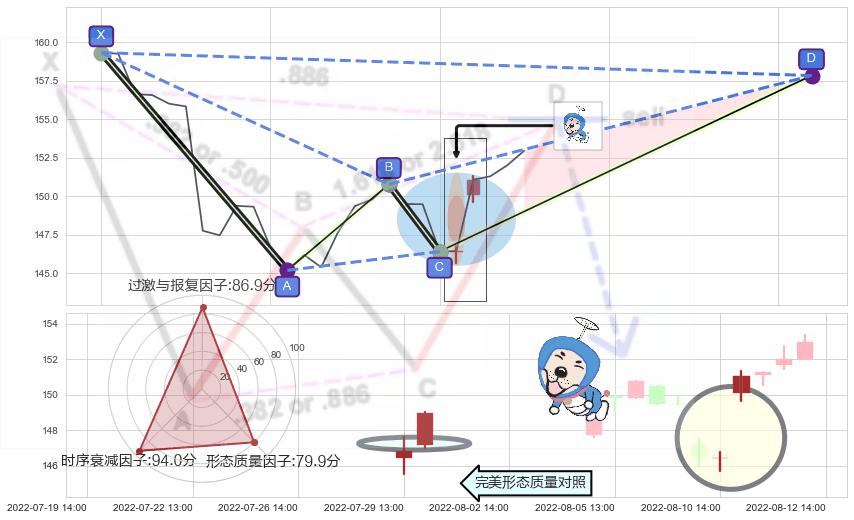 ➢ 未完成【蝙蝠】形态起点X: 07-26:13, 已到达C点: 08-10:13, 预测最终D点: 08-17:13, 共43交易小时