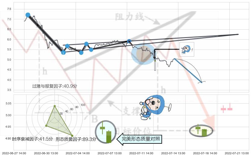 ➢ 🕰 价格走势在2022-07-15 13:00:00至2022-07-15 14:00:00期间形成下跌螺旋桨,残存影响值:-4.32