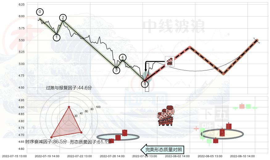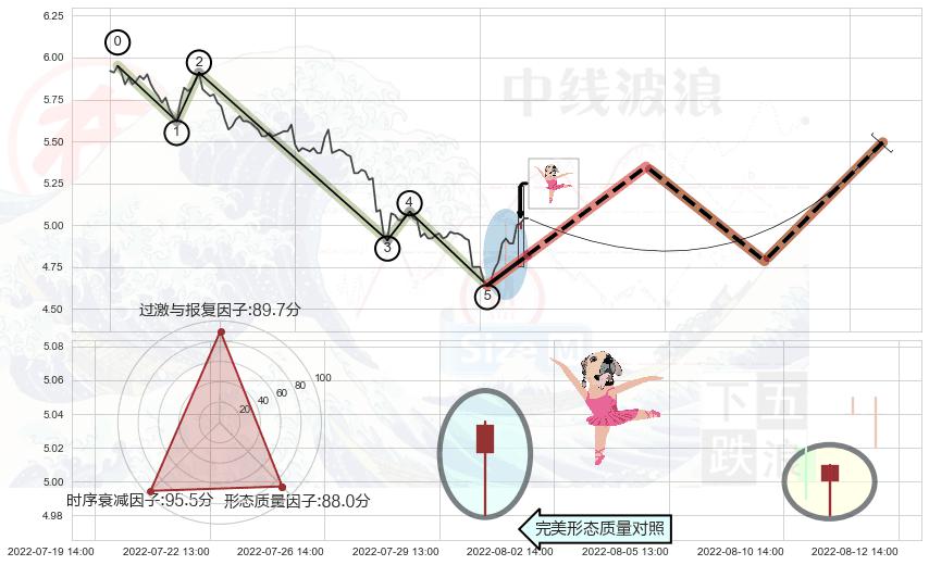 从2022-08-04 13:00至2022-08-12 14:00,共包含12个小时,阶段股价上涨8.34%,阶段股价变动位移路程比: 1 : 1.1