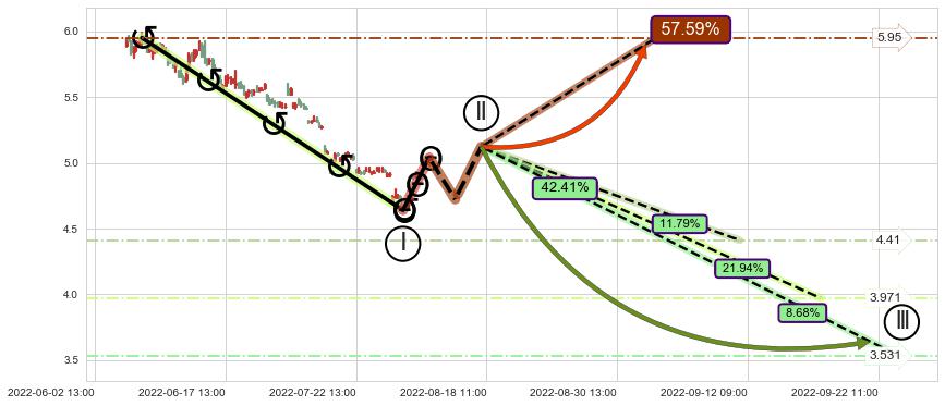 ➣ 预测:2022-08-25 09:00,【继续下探】稳定目前下跌趋势的前提下,预测价格:4.22