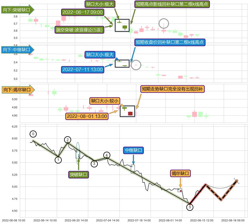 ➢ 2022-08-01 13:00形成:向下跳空【竭尽】缺口