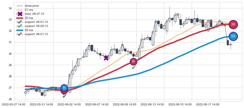 ➣ 55小时均线于(06-20 14:00: 31.45)形成【死叉】基于【死叉历史模型】预测死叉后最低波谷价格: 28.07, 死叉后最低价格27.00,已经下跌超出预测最低波谷价格, 预期反弹