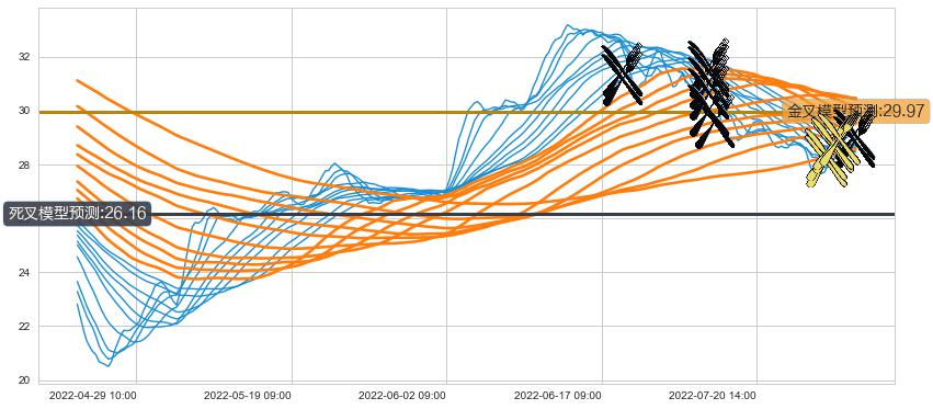 ➣ 120小时均线于(07-08 14:00: 29.98)形成【死叉】基于【死叉历史模型】预测死叉后最低波谷价格: 24.14, 死叉后最低价格27.00,尚未达到预测最低波谷价格, 预期继续下跌