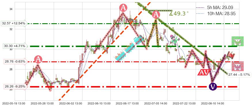♘ 阻力价格位30.30,可信任强度86.57%,距离最后交易2022-08-12 14:00形成的收盘价格28.94相差 +4.71%