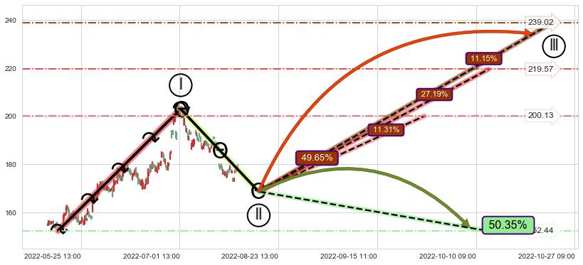 ➣ 循环浪继续向上【平均值】位置(10-12:10, 219.57),匹配聚类样本比例54.75%, 可能性概率27.19%