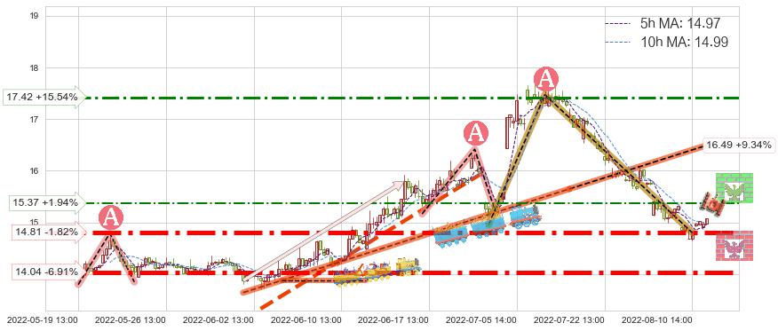 ♞ 5小时均线:14.97,10小时均线:14.99→ 快线<慢线