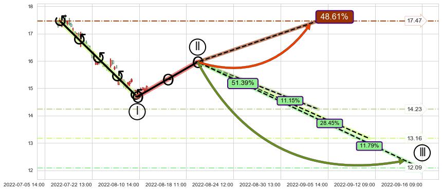 ➢ 循环浪继续向下【最高】位置(09-05:09, 14.23),匹配聚类样本比例21.70%, 可能性概率11.15%