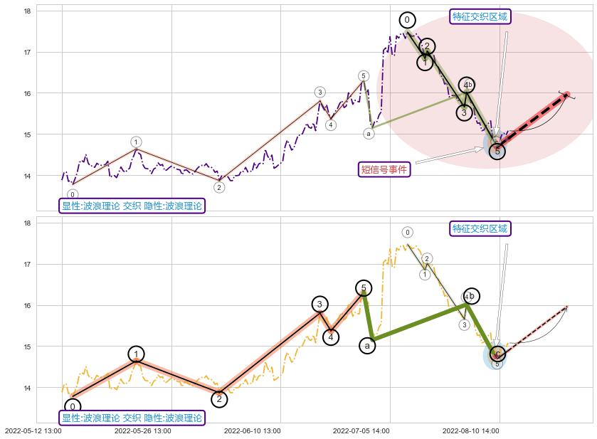 从2022-06-29 14:00至2022-08-12 14:00,共包含63个小时,阶段股价上涨0.32%,阶段股价变动位移路程比: 1 : 177