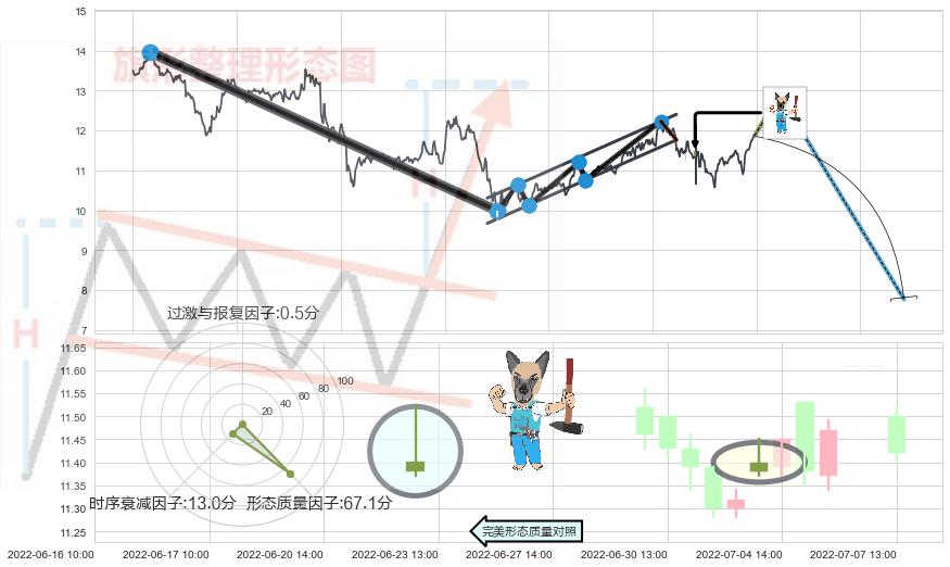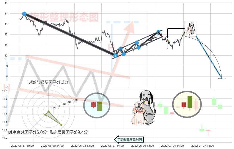 ➢ 🕰 价格走势在2022-07-04 13:00:00至2022-07-04 13:00:00期间形成看跌(高位倒锤头)流星线,残存影响值:-1.57