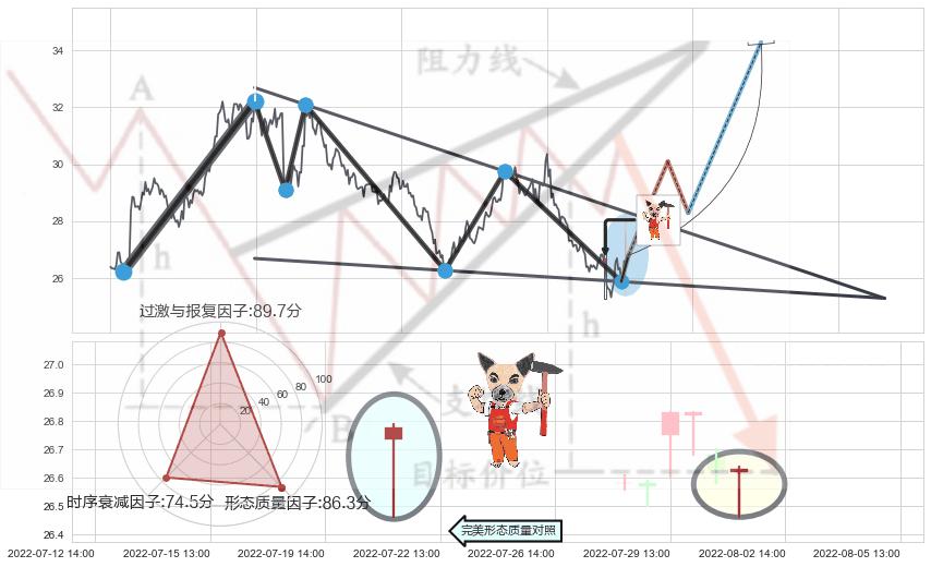 ➢ 🕰 价格走势在2022-08-01 14:00:00至2022-08-01 14:00:00期间形成锤头线(锤子线),残存影响值:7.52