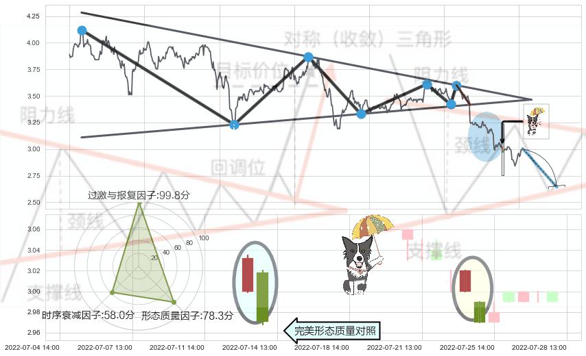 ➢ 【卖1】: 激进型 卖点→(06-23:13: 3.416 )形成突破下降【对称】三角形整理【整理】形态