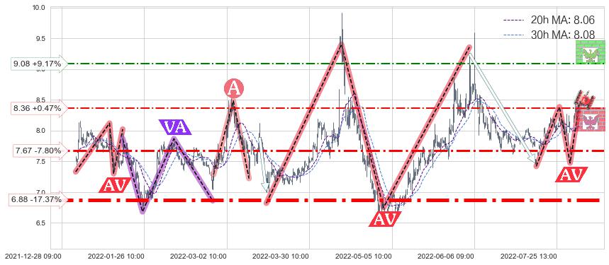 ♞ 20小时均线:8.06,30小时均线:8.08→ 快线<慢线