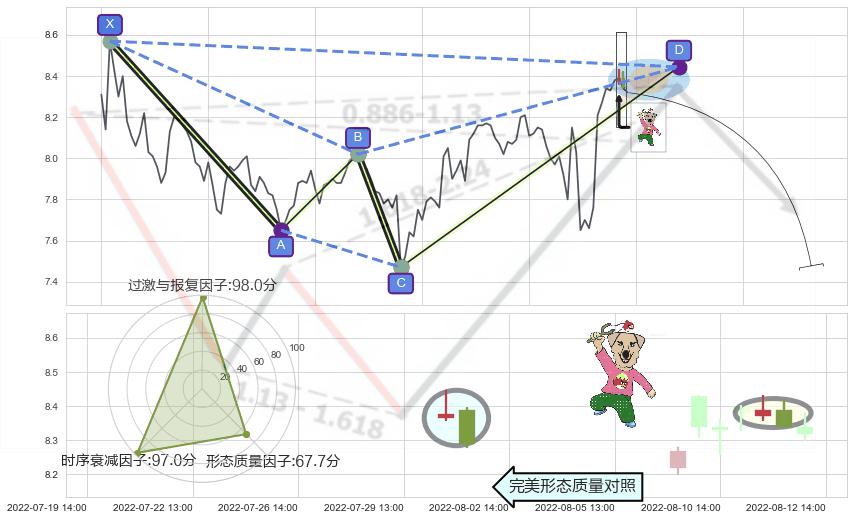 ➢ 阴包阳形态 🔜 谐波鲨鱼临近d拐点下跌阻力 综合量化分数:48.27 【中性】