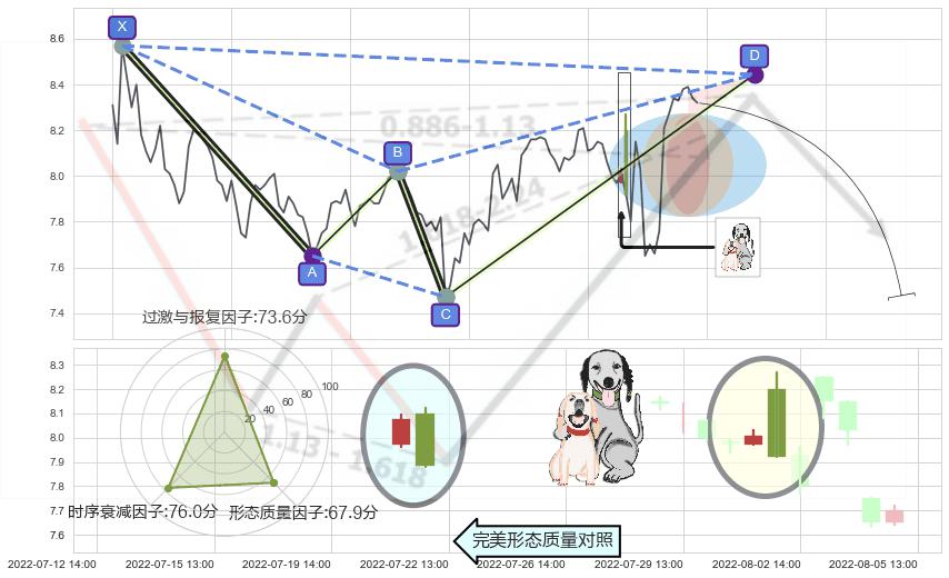 ➣ 未完成【鲨鱼】形态起点X: 06-07:10, 已到达C点: 07-06:13, 预测最终D点: 08-16:14, 共132交易小时