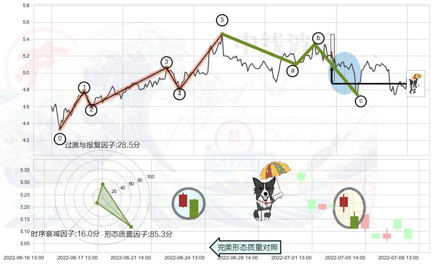 ♘ 阻力价格位5.10,可信任强度86.06%,距离最后交易2022-08-12 14:00形成的收盘价格5.01相差 +1.78%
