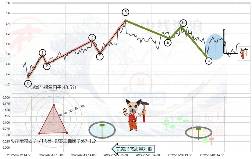 ➢ 🕰 价格走势在2022-07-22 14:00:00至2022-07-25 13:00:00期间形成下跌螺旋桨,残存影响值:-5.48