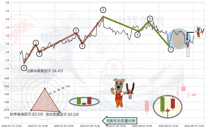 从2022-07-15 14:00至2022-08-12 14:00,共包含39个小时,阶段股价上涨5.90%,阶段股价变动位移路程比: 1 : 5