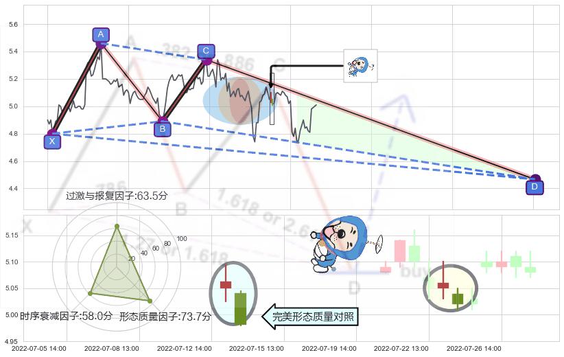 ➢ 🕰 价格走势在2022-07-22 14:00:00至2022-07-25 13:00:00期间形成下跌螺旋桨,残存影响值:-5.48