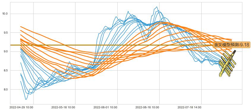 ➣ 70小时均线于(08-11 14:00: 8.83)形成【金叉】基于【金叉历史模型】预测金叉后最高波峰价格: 9.43, 金叉后最高价格8.88,尚未达到预测最高波峰价格, 预期继续上涨