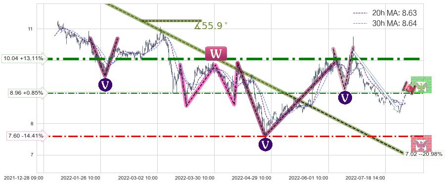 ♘ 支撑价格位7.60,可信任强度56.29%,距离最后交易2022-08-12 14:00形成的收盘价格8.88相差 -14.41%