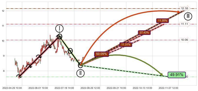 ➢ 【仅预测突破】最后价格:8.88与预测突破价格:10.47→【空间较大】后续最小【反转】第一目标价格→(10-10:10: 12.93 )