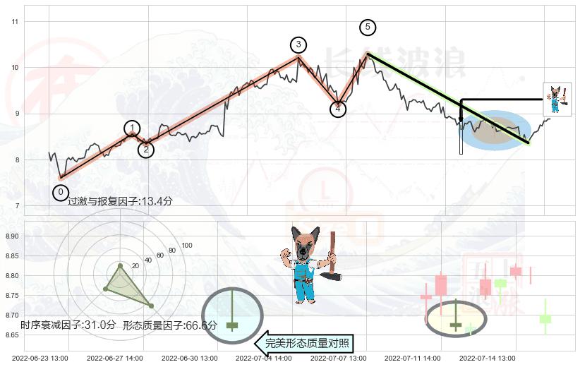 ➢ 🕰 价格走势在2022-07-07 14:00:00至2022-07-08 13:00:00期间形成底部尽头线(上山虎),残存影响值:2.56
