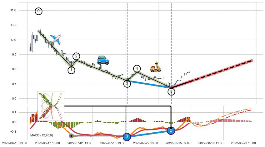 ➣ 波浪理论:猜想达到c点后小回调终止反转上涨 → 上涨 → 【拐点】临近 → 阶段均值回复结束后继续大周期趋势跟踪