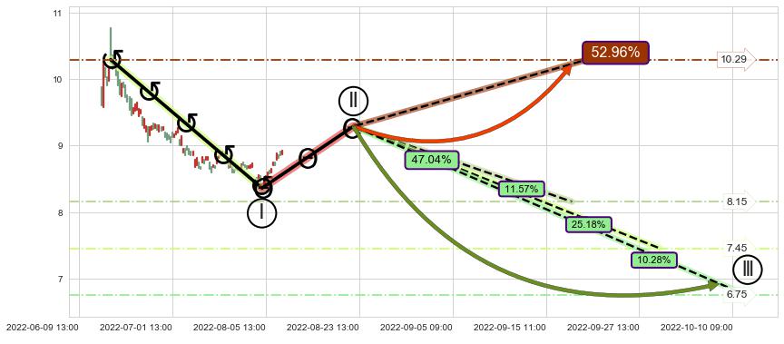 ♘ 支撑价格位8.45,可信任强度76.41%,距离最后交易2022-08-12 14:00形成的收盘价格8.88相差 -4.87%