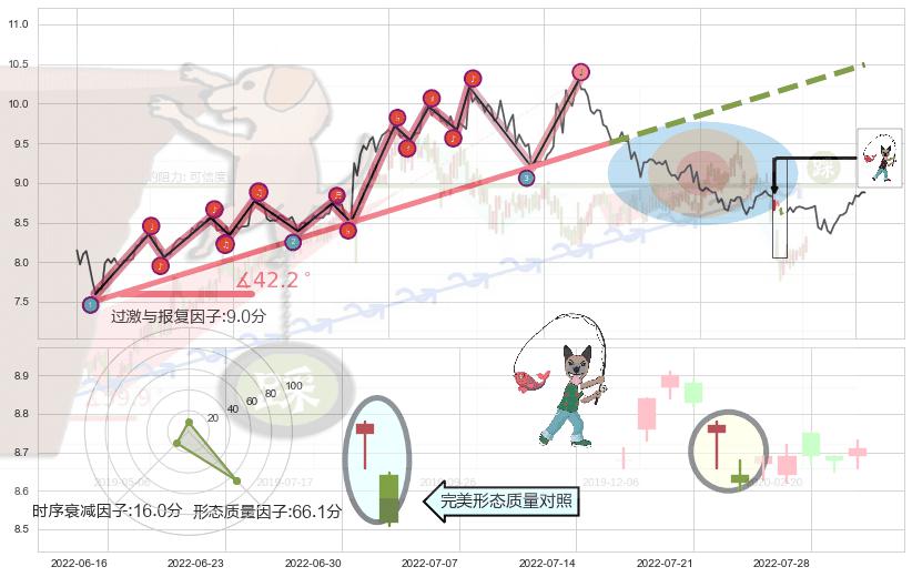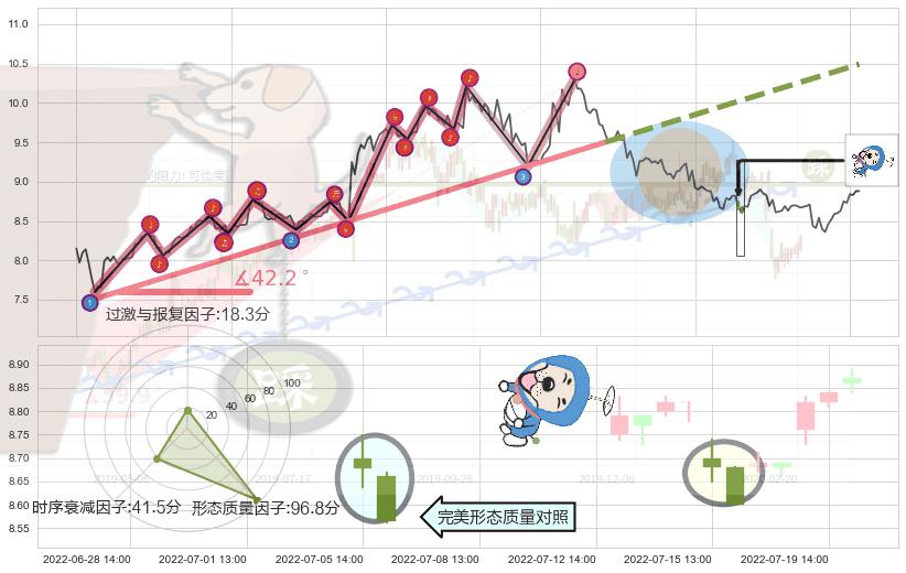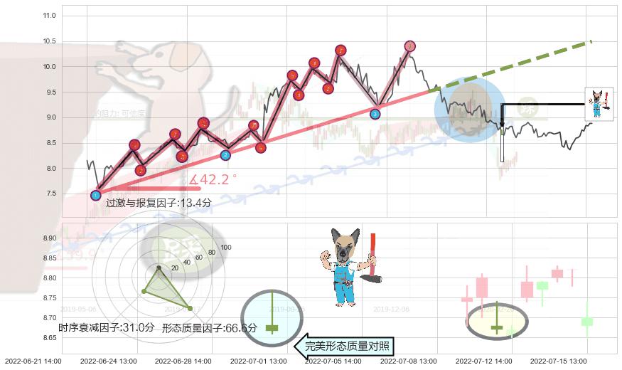 ➣ 2022-04-27 09:00-2022-06-17 09:00上升趋势存在反转[风险],其原上升趋势的支撑位(10.49)已破位[强阻力信号],原上升趋势角度: 42.2˚