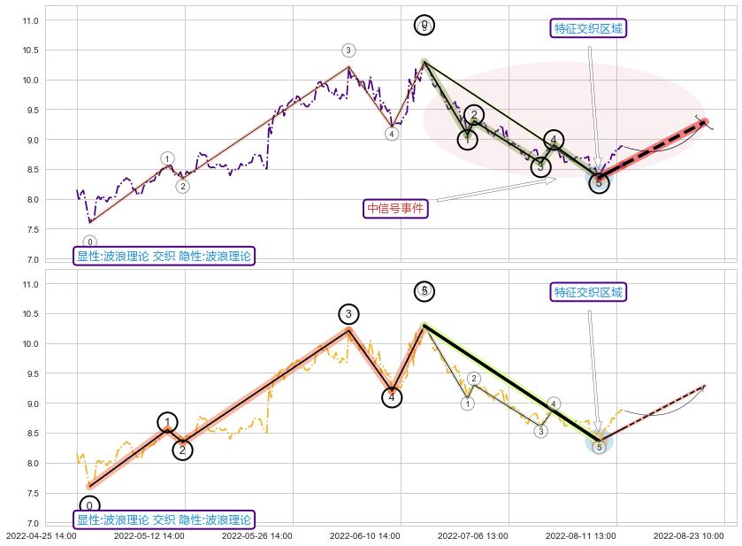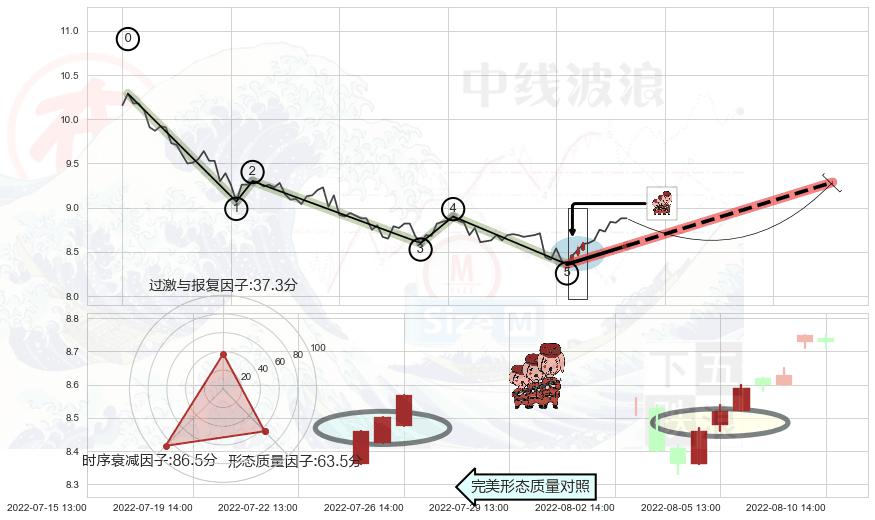 从2022-08-04 13:00至2022-08-12 14:00,共包含12个小时,阶段股价上涨6.07%,阶段股价变动位移路程比: 1 : 1.1